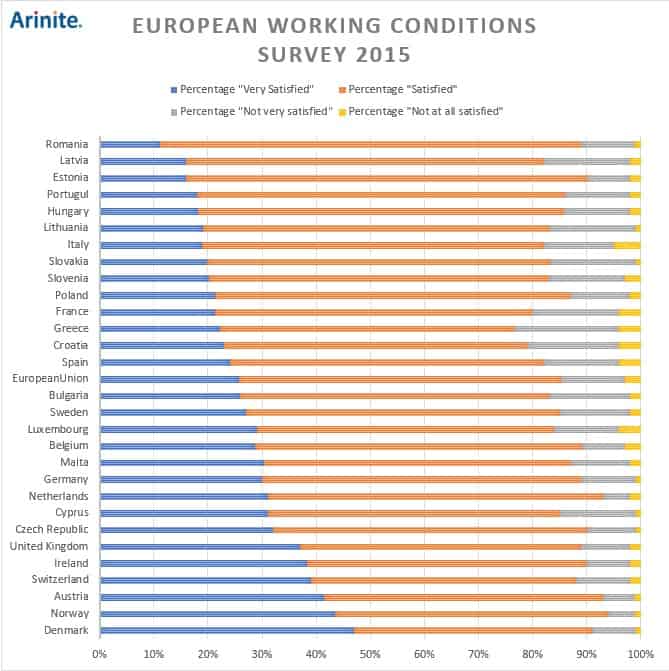 If you now look at how workers from these countries perceive safety in the workplace, the results are perplexing. Denmark, which scored fourth in the incident rating, now ranks first place, with almost 50% stating they were “Very Satisfied” with their working conditions. They thus having the most satisfied work force in the ranking.