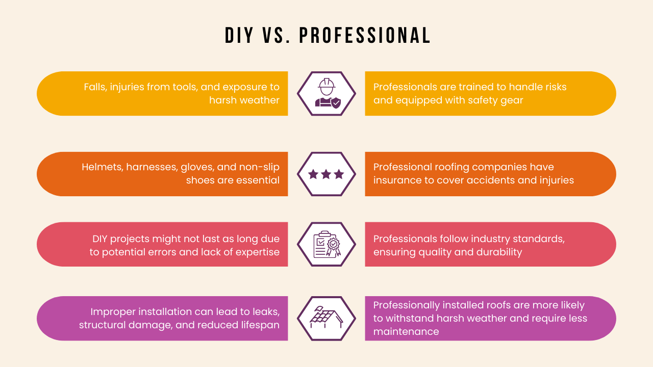 - DIY roofing repairs can lead to significant issues that compromise the quality and safety of the roofing work.