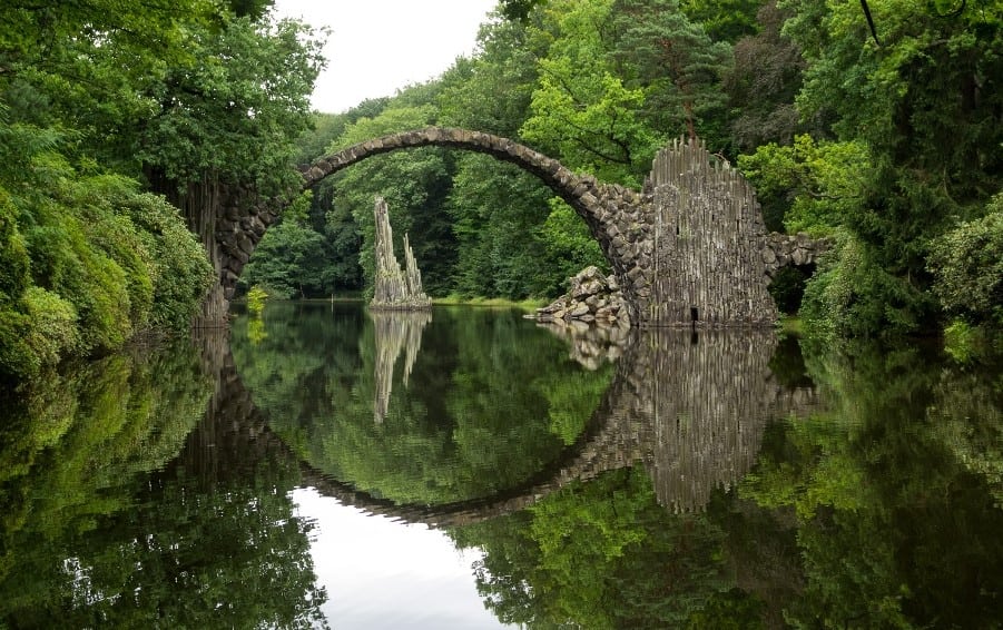 This bizarre bridge, combined with its own reflection, creates a perfect circle. The bridge is said to have been commissioned by a knight in 1860. But the rocks and stones used for its creation are jagged and spikey, so it was dangerous to cross.