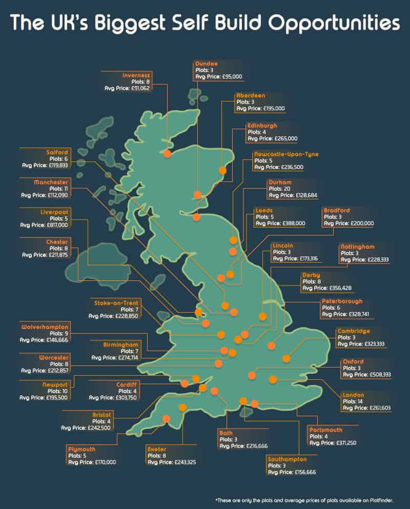 To help, Insulation Express have uncovered the biggest opportunities in the UK for aspiring self-build homeowners, property investors and SME builders. The results have been collated into a map which highlights the top 30 cities; the data also includes the number of available plots and the average plot price for each city: https://www.insulationexpress.co.uk/blog/uks-biggest-self-build-opportunities/