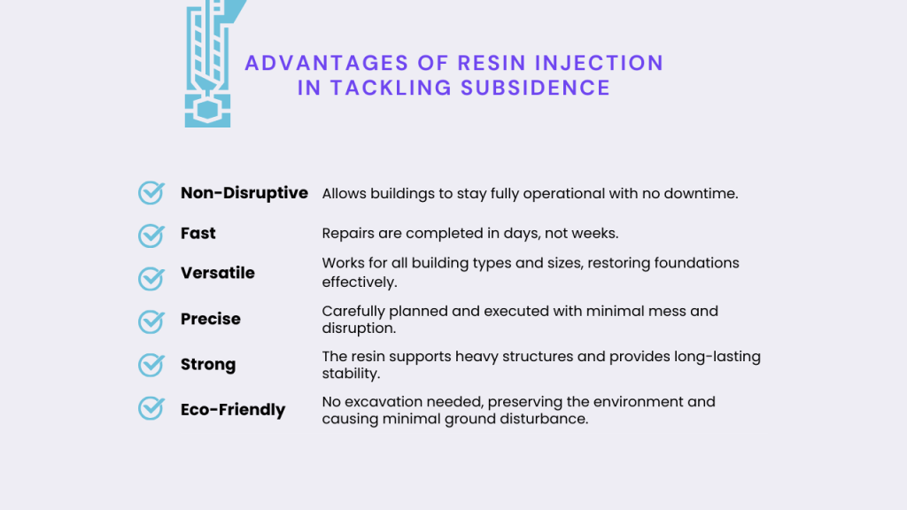- Resin injection is an effective, non-invasive method to fix subsidence, often completed in a day without major disruption.