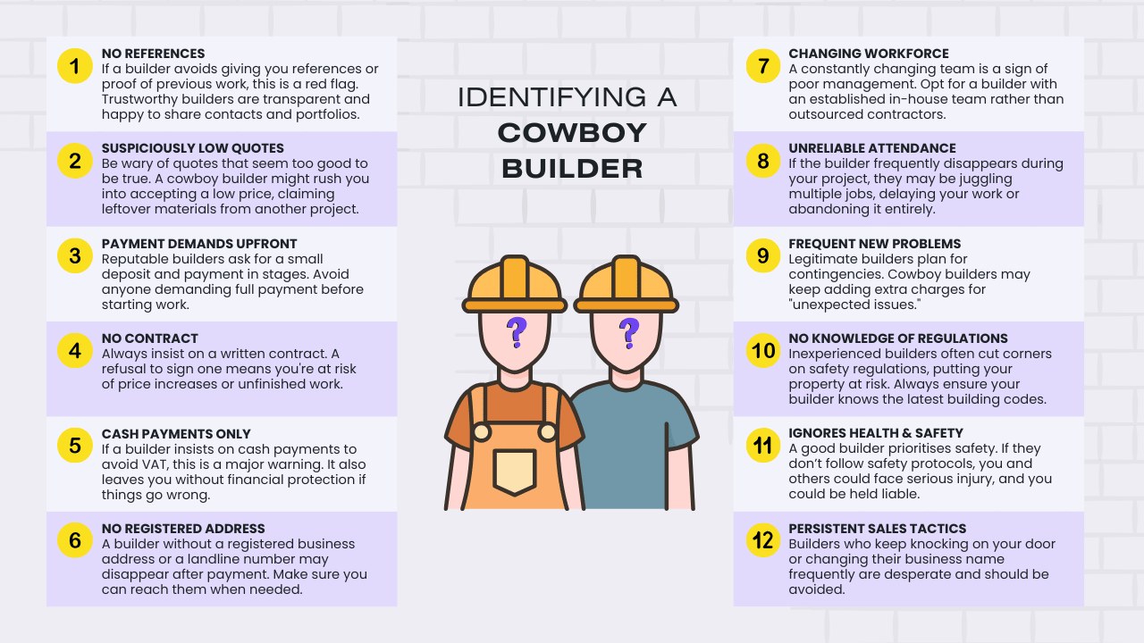 Recognizing the telltale signs of a cowboy builder is crucial to avoid potential issues and ensure you hire a trustworthy professional.
