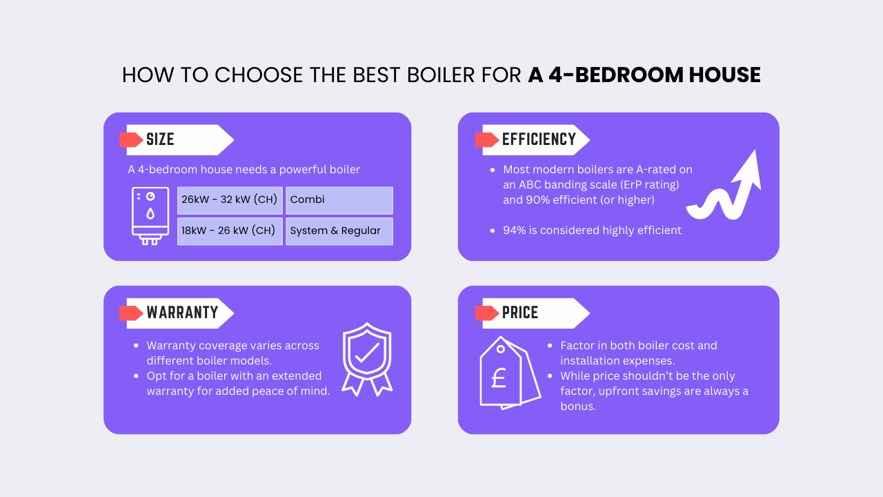 • Size your boiler correctly to ensure efficient heating for a 4-bedroom house.