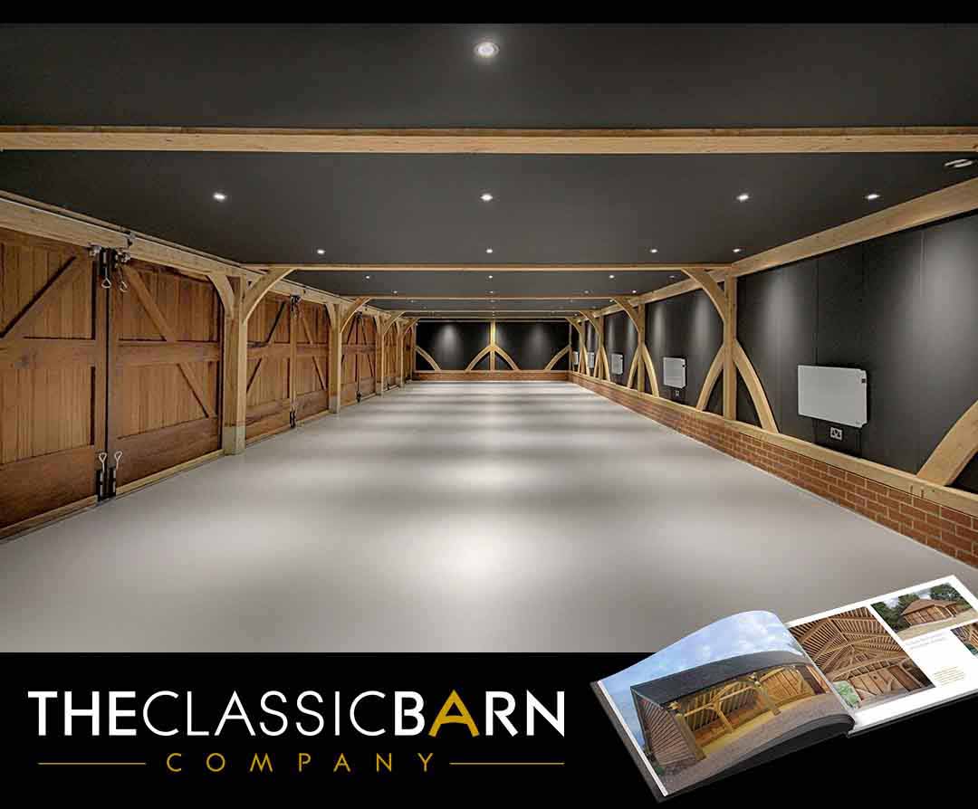 This example below was taken from a turn key project where the brief was to develop an outbuilding complex with extra wide carports featuring large overhead oak trusses, that doubled up as an outdoor entertainment area. Upstairs in the L-shaped section is a well-appointed accommodation providing guests with some privacy. The Classic Barn Company provided a full turn key service that included fitting out the interior accommodation above, it is well worth contacting them to see this beautiful space.