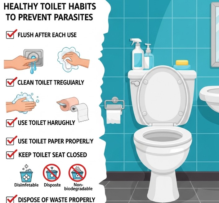 Parasites in toilet areas can thrive if proper sanitation is not maintained. To avoid parasites in toilet environments, it’s crucial to adopt daily habits that reduce contact with contaminated surfaces.