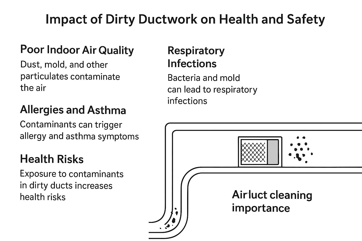 The impact of dirty ductwork on health and safety is significant. Contaminants in ductwork can cause: