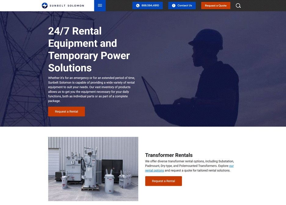 Sunbelt Solomon is one of North America’s largest providers of transformers and temporary power equipment, with more than a century of combined expertise. The company offers a full range of rental solutions — from substation, padmount, dry-type and pole-mounted transformers to cables, transfer switches and power distribution gear — designed to support emergency and planned outages. Beyond equipment, its experienced technicians provide installation, field service and maintenance to ensure safe, seamless integration into manufacturing operations.