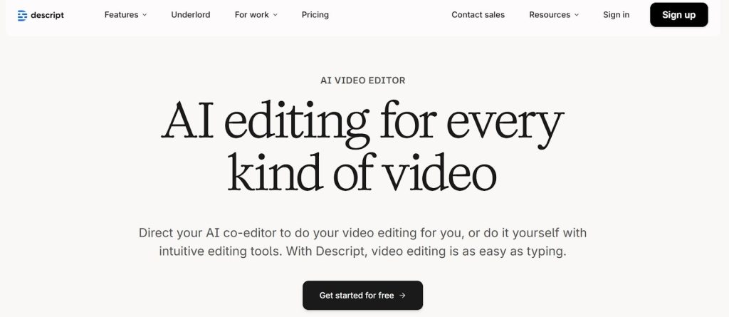 Descript is more than a just transcription tool, it’s a full multimedia editor built around text. When you upload a video, it generates a transcript that you can edit like a document, and any changes you make to the text automatically update the audio and video.