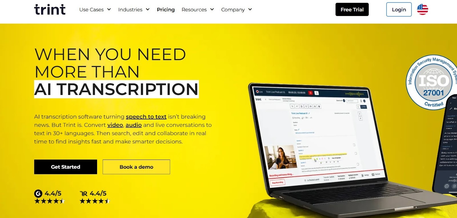 Trint is a powerful platform that converts video and audio content into accurate, editable text quickly. Its smart speech-to-text technology makes it easy to review, search, and share important information from recordings.