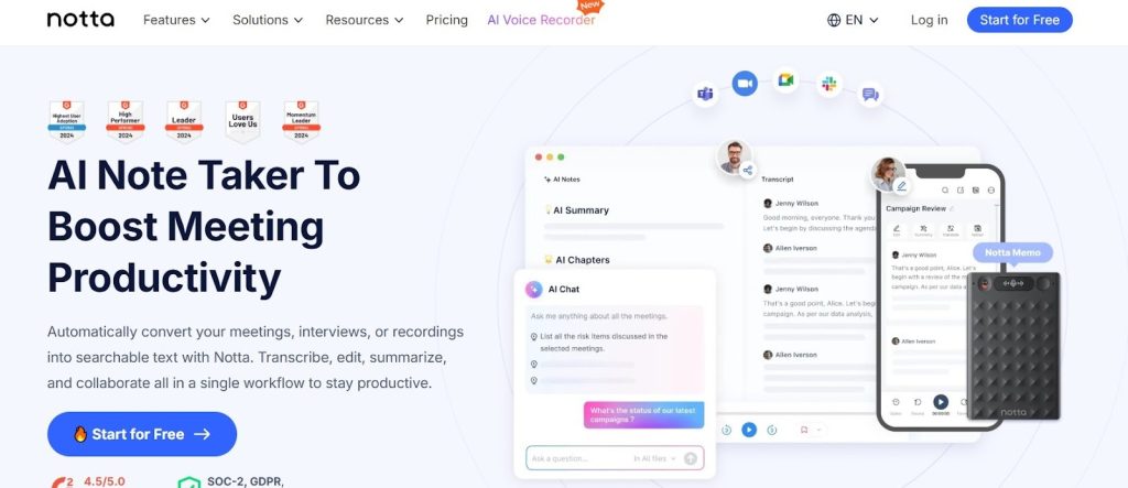 Notta is a simple, easy-to-use transcription tool that makes turning audio and video into text quick and intuitive. It works well for meetings, interviews, training sessions, and on-the-go recordings, helping teams capture spoken content without extra effort.